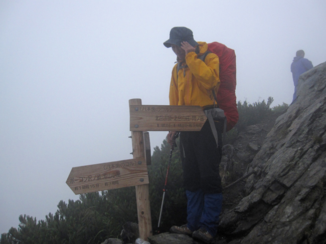 本当なら、八本歯のコルから大迫力のバットレスや間ノ岳がドカーンと見えるはずなのに今日は残念だ。