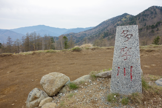 荒川、多摩川、富士川の3つの河川へと分かれる分水嶺。